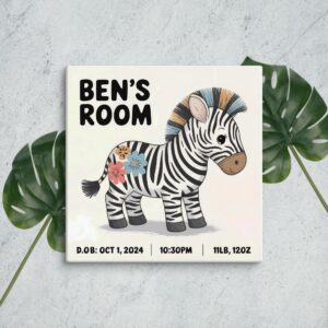 Celebrate the arrival of your little one in a truly special way with our personalized animal canvases, designed exclusively for newborns. This enchanting collection allows you to customize each piece with your child’s name, time of birth, weight at birth, and date of birth, all beautifully showcased alongside charming animal illustrations. Whether it’s a cuddly bear or a playful lion, each canvas serves as a heartfelt keepsake that commemorates the unique traits of your child’s debut into the world. Create a lasting memory that adds warmth and character to your nursery, making it a delightful space to cherish their early milestones!
